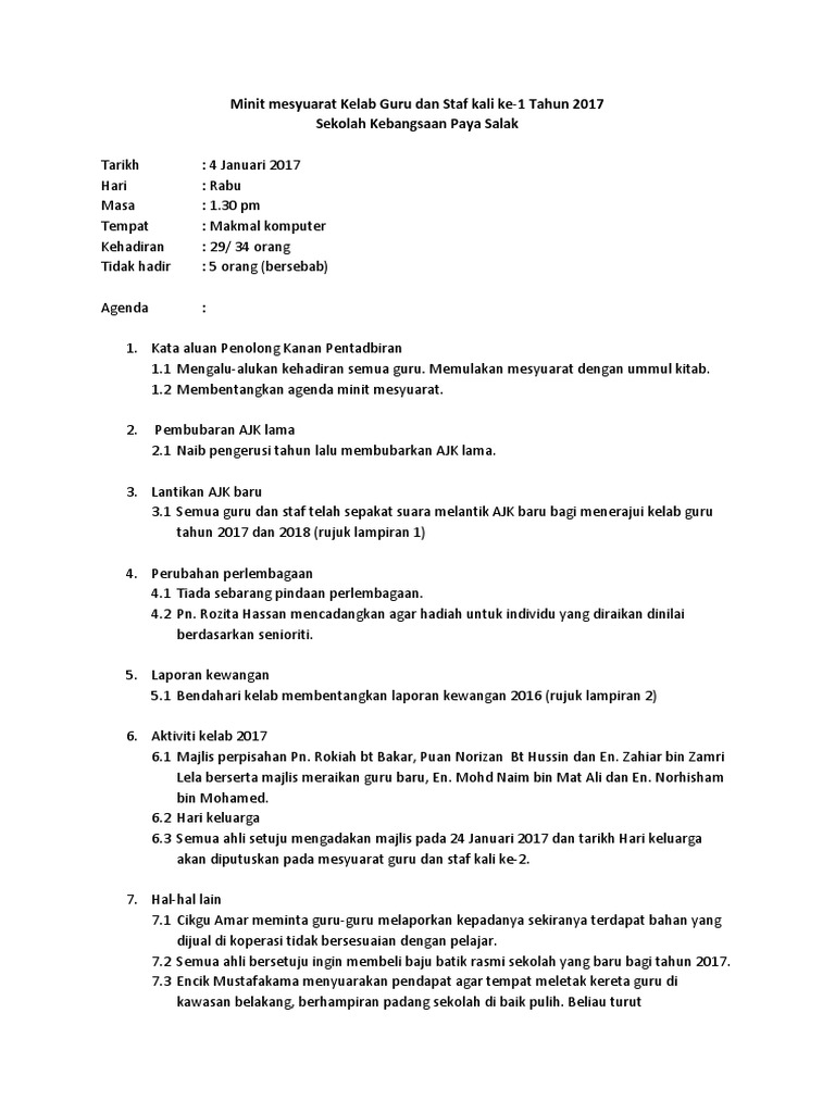 Minit Mesyuarat Guru Akhir Tahun 2017 Pdf